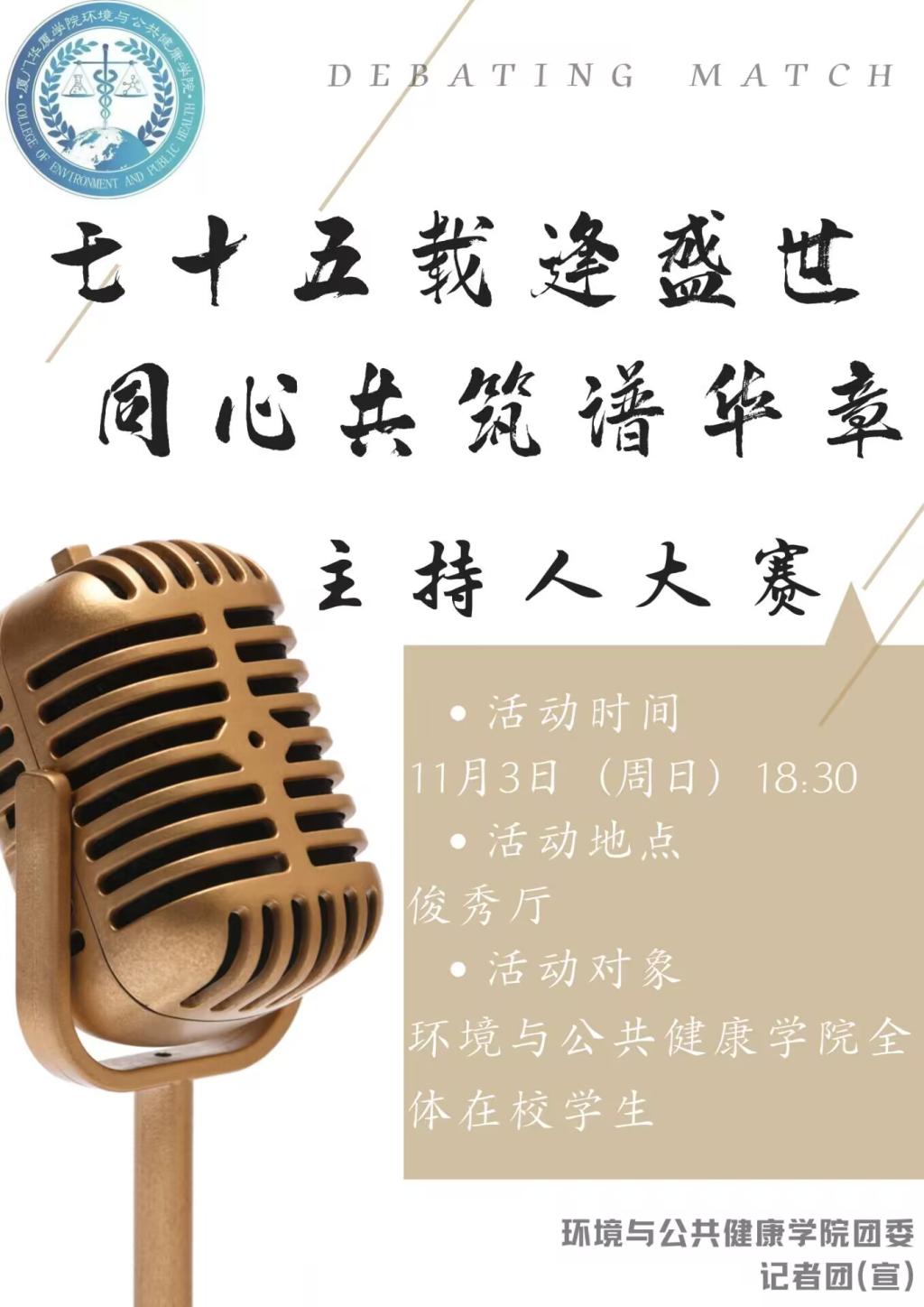 为庆祝新中国成立75周年,进一步丰富校园文化内涵,培养和发掘大学生的口头表达能力、随机应变能力,强化实践技能,发挥个人特长,为热爱主持艺术、渴望展现自我的同学们搭建一个闪耀的舞台,培养今年会jinnianhui官网学子的综合素质,充分展示今年会学子的亮丽风采,特举办此次“七十五载逢盛世 同心共筑谱华章”主持人大赛活动。具体通知如下: