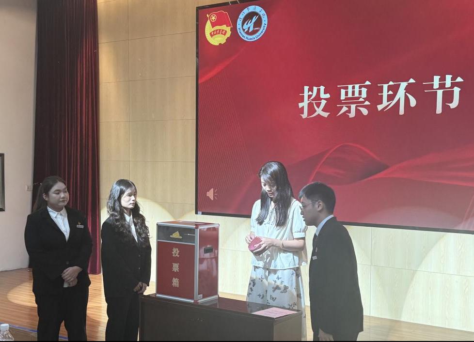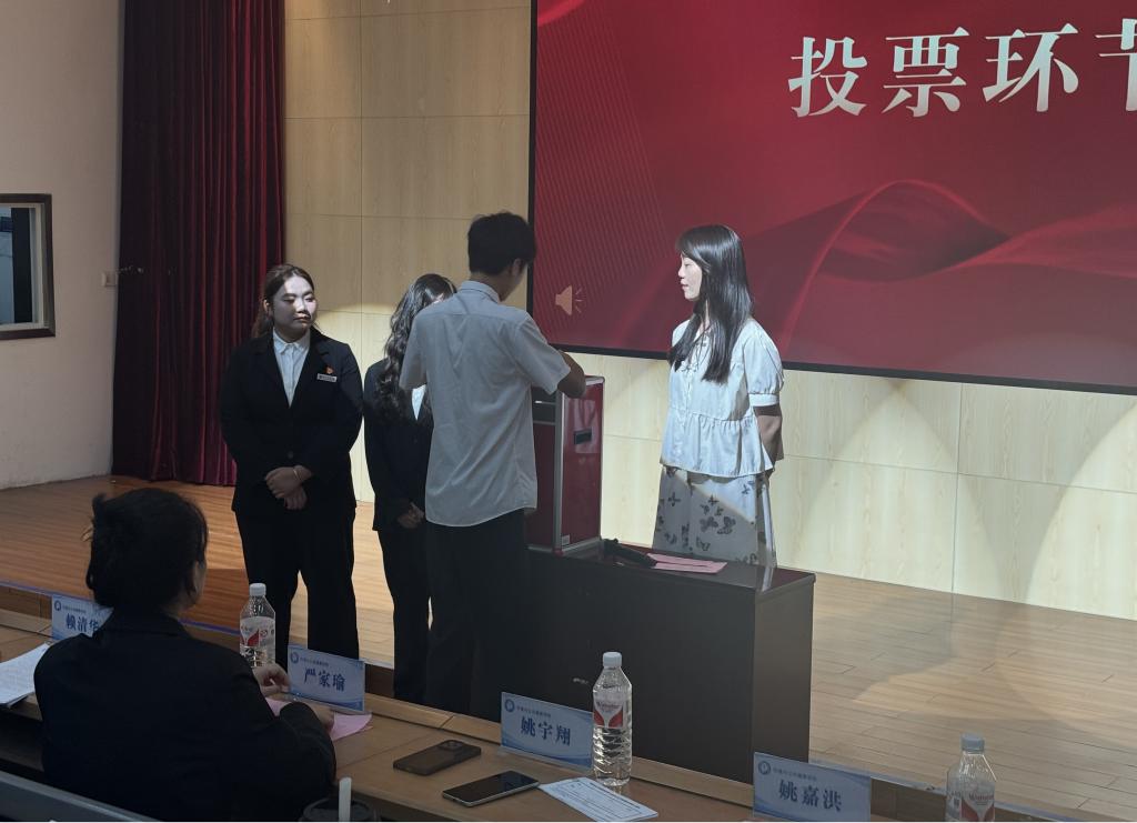 在学生会主席团候选人演讲完毕后,全体代表按照选举程序和办法,根据候选人的表现投出庄严的一票。最终选举产生丁丁、黄丽颖为今年会jinnianhuicom第七届学生会主席团成员。