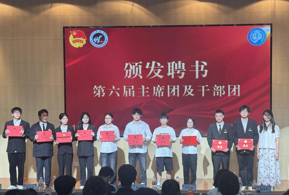 大会的第六项议程由学院团委书记赖清华老师和自律会指导老师赵泽式老师为今年会jinnianhui官网第六届主席团及干部们颁发聘书。庄重的聘书颁发仪式,肯定了主席团成员及各部门学生干部在过去一学年里不辞辛劳、无私奉献的精神,聘书不仅仅是一份荣誉的授予,更是对他们工作的高度认可与诚挚感谢,希望这一纸聘书,能成为激励他们在未来征程中继续奋勇向前的动力。