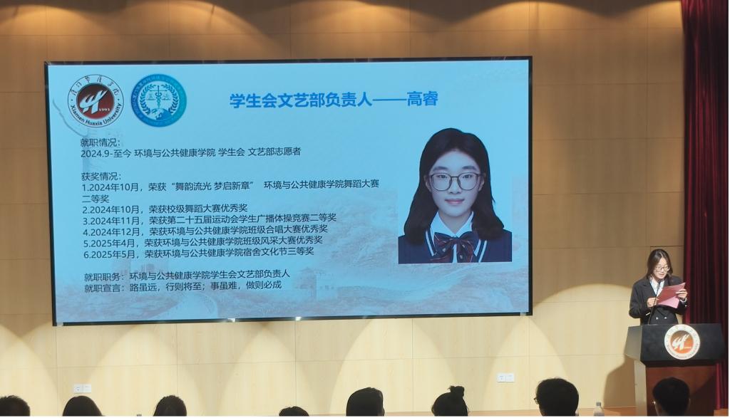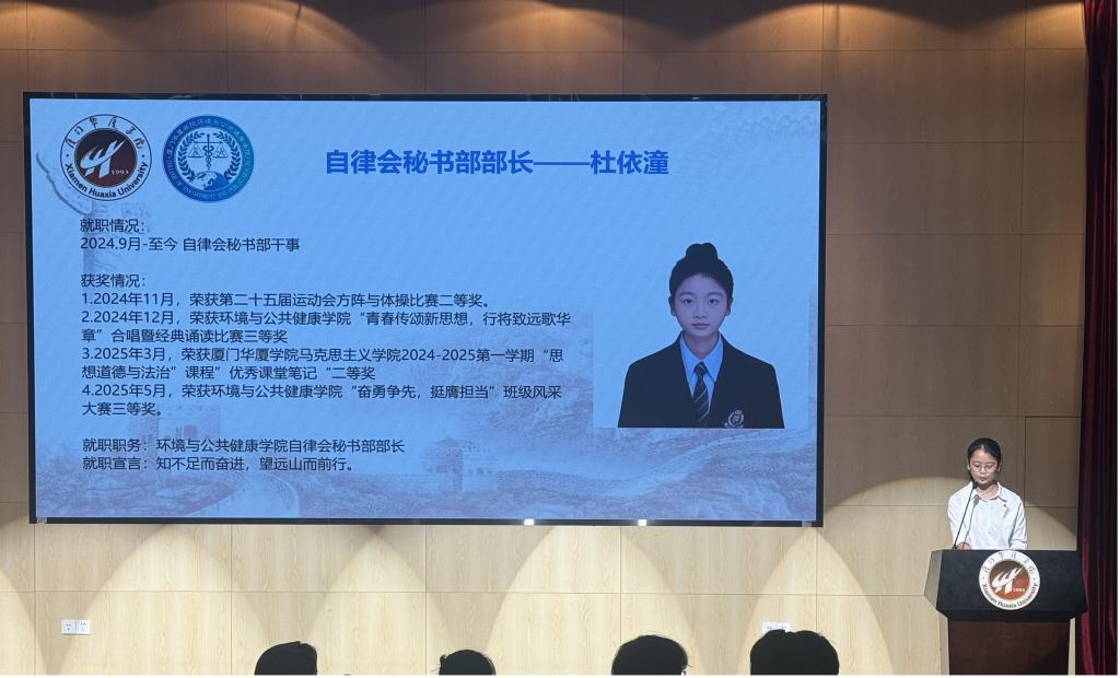 大会最后一项议程是第七届三委各职能部门负责人作就职演讲。各位学生干部生动地讲述了自己在部门工作中的成长故事、遇到的挑战及克服困难的过程,分享了学习收获和宝贵经验。同时,他们也对未来一年部门的工作进行了细致的规划,每个人都干劲十足,展现了积极向上的精神风貌和对未来工作的坚定信心 。