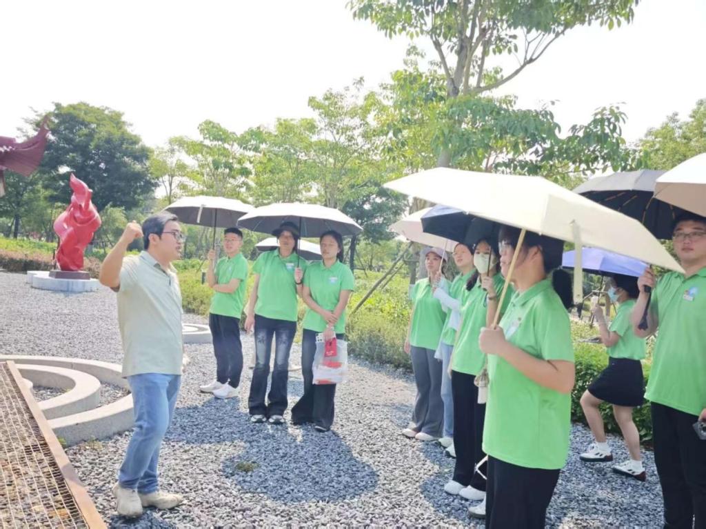 在实地参观的过程中,遇到不少厦大学子正在辛勤实验。他们热情地为实践队员们讲解正在推进的实验项目及相关原理,即通过还原真实的植物生长环境,观察生物多样性,探究不同的植物组合对生态系统功能的影响。实践队成员们一边倾听一边结合自己所学的专业知识进行思考和讨论。他们深刻认识到,生态保护不仅仅是保护单一的物种,更是要维护整个生态系统的平衡和稳定。八闽园的成功建设为他们提供了一个生动的案例,让他们对生态保护与景观设计的融合有了更为直观且深刻的认识,为今后的专业学习积累了宝贵的素材。