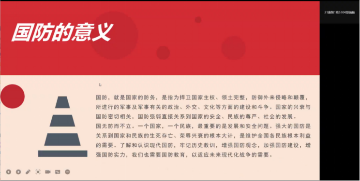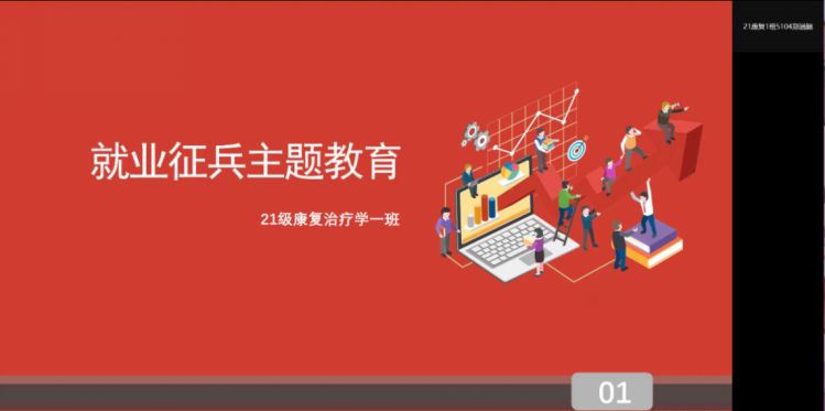 根据学校党政相关文件以及疫情防控要求,2021级康复治疗学1班班会于2022年4月4日19:30在线上通过腾讯会议举行。参与本次班会的主要人员有李益坤老师以及21级康复治疗学1班的全体同学。本次开展了以“就业、征兵”为主题的教育活动主题班会。
