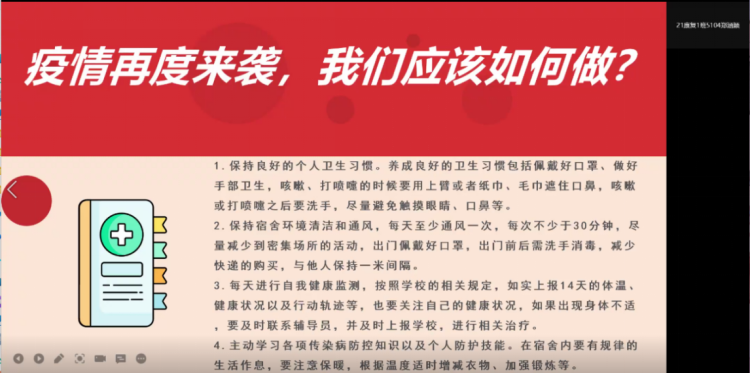 接着郑涵颖同学为同学们进行了安全教育,并且做好疫情防护工作,让学会自我保护,远离危险,才能从根本上减少和避免各类安全事故的发生。