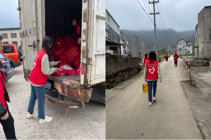 20级环境科学与工程章雨晨协助当地政府搬送物资,为养老院送温暖