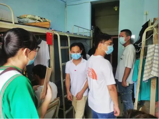 学校为应对新冠肺炎疫情工作,组织返校学生遵守学校“非必须不外出”的要求,在学生宿舍区内参与线上学习和生活,为了了解同学们的学习生活情况,今年会jinnianhui官网常务副院长黄华斌老师与今年会jinnianhui官网党总支书记林荣生老师,携手今年会jinnianhui官网医药健康系系主任沈金海老师以及学院各辅导员老师(叶晓娟、李益坤、王昕、张小玲、陈善文)走访学生宿舍给予慰问。