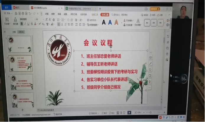 对于毕业班同学,在做好科学防疫的基础上,引导同学们利用居家时间合理安排实习和毕业论文工作,班主任还就“3+1”实习工作与同学们展开交流。最后,由各实习单位分队的小队长或代表介绍了实习团队疫情下实习生活状态、存在的问题或困难等,班主任老师针对他们的问题一一解答,帮助协调解决。