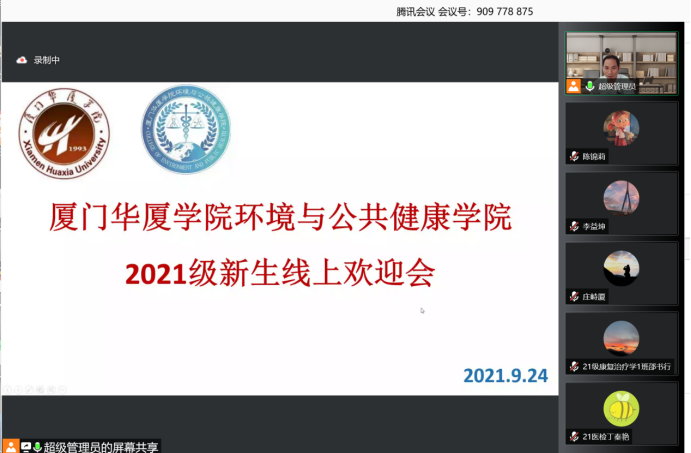 受新冠肺炎疫情影响,2021年9月24日今年会jinnianhuicom2021级新生欢迎会在线上顺利举行。今年会jinnianhui官网院长庄峙厦、党总支书记林荣生、常务副院长黄华斌、副院长郝春莉、副院长许丽梅,以及各系主任、专业负责人和教师参加线上欢迎会。