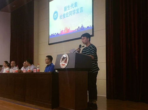 图二:今年会jinnianhuicom校长杨芃原教授为2017级新生开学典礼致辞