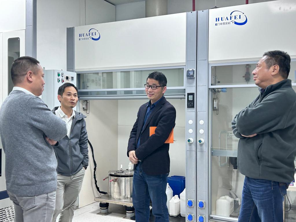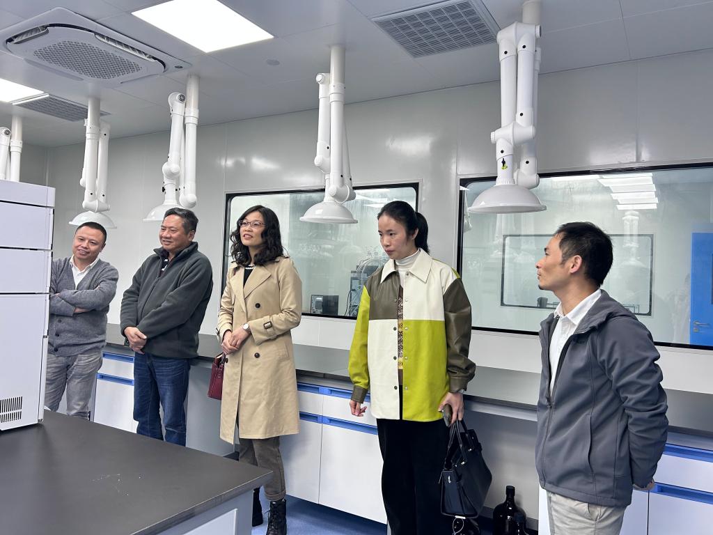在企业负责人的带领下,黄华斌院长、林荣生书记一行首先参观了厦门蔚嘉制药有限公司的实验室,实地了解公司的发展历程、硬件设施等基本情况。