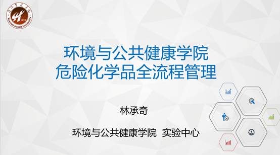 接着,实验中心副主任林承奇老师介绍了实验室危险化学品全流程管理制度。从实验室危险化学品分级方法、不同分级化学品的管理方式、存储要求、保管要求、使用要求、台账填写要求等进行了详细的介绍。并就实验室危险化学品清查整改、实验室过期及无标签试剂清查整改等工作进行了安排。
