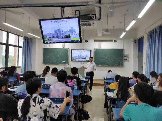 在“请进来”环节, 本次邀请了厦门海关技术中心的方恩华高级工程师、集美大学食品与生物工程学院杨燊副教授、SGS厦门分公司的人事经理和检测技术工程师开展专业认知讲座。通过听取讲座,同学们了解了食品行业发展现状和趋势、食品相关岗位工作内容和技能要求,理解了大学各门课程学习的意义。