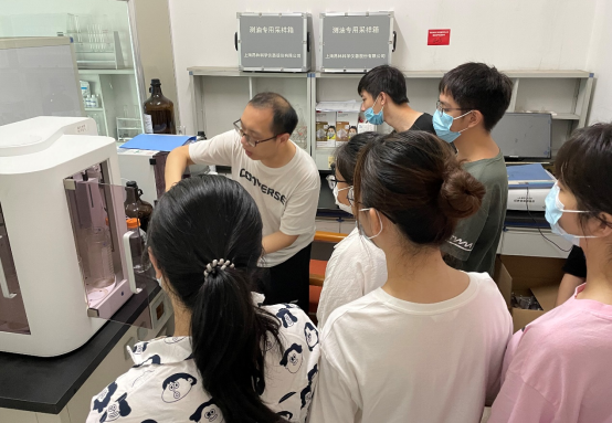 专业技术人员为学生介绍实验仪器的名称、用途及使用方法