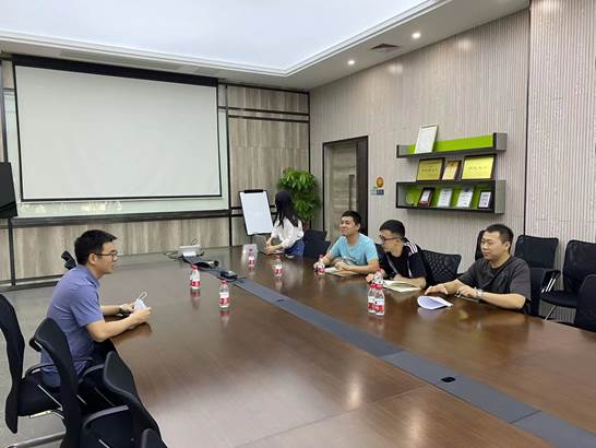 在公司负责人的带领下专业教师参观了企业办公环境,深入了解了学生实习环境和工作氛围。在工作人员的安排下,还与公司负责人和实习学生展开座谈,全面了解学生的实习情况,听取公司对学生在实习期间表现的反馈意见;同时调研学生在实习期间的收获和遇到的困难,并对学生出现的疑虑和问题给与帮助和解答。企业指导老师对专业学生踏实肯干的良好品质均表示充分肯定,实习学生也表示通过近三个月的实习已基本适应实习节奏,并表达出对未来的实习生活有着美好的憧憬。专业负责人沈金海教授叮嘱学生做好疫情防护,注意个人安全,莫忘“职业人+学生”的双重身份,既要以职场中人严格要求自己,转被动为主动学习,也要认真按时完成学校安排的学习任务。