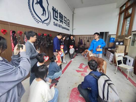 志愿活动过程中,康复治疗学专业学生作为志愿者,陪护自闭症儿童全程参与马术疗愈,活动起始前后进行专业量表评定并记录,使同学们将理论知识与实践应用有机结合,进一步提升康复技能。活动开始前,由世奥马术训练师指导学习马术基本操作规范,通过与马儿的接触、互动、趣味竞技等环节,利用马的律动及在马上设计的一些治疗计划,对自闭症儿童从生理、心理、认知、社会化及行为上进行治疗。此次康复志愿活动内容丰富、形式新颖的课程设计激发了同学们的学习热情,他们通过陪护自闭症儿童进行马术康复,了解马术疗愈提供触觉、前庭觉、本体感觉等感觉刺激,将改善自闭症儿童语言能力、提高注意力、增强对情绪及行为的控制力。