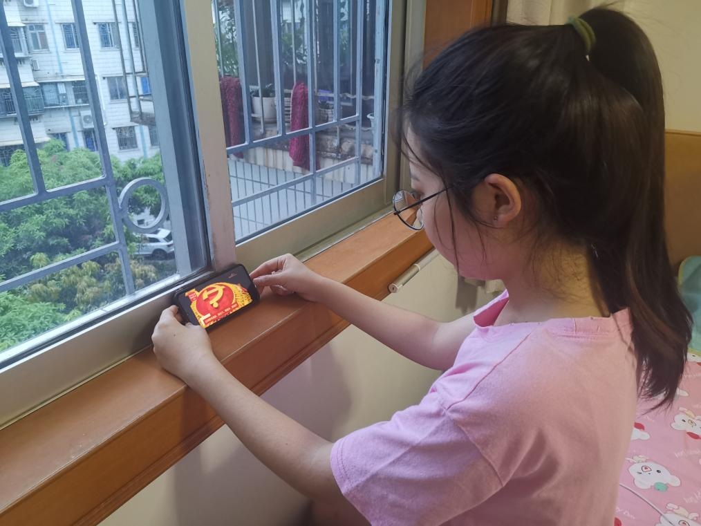 党员先锋队队员廖艺璐观看“七一勋章获得者”的视频