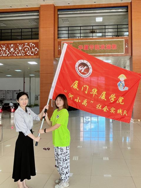 校团委书记范莉梅老师为“河小禹”实践队出征授旗