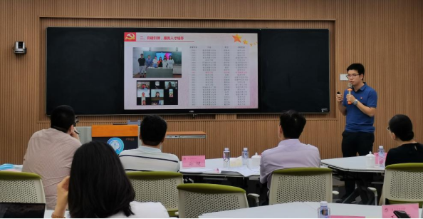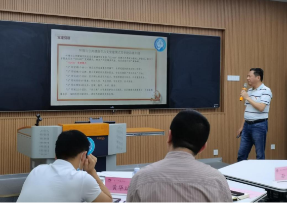教工党支部书记沈金海以“坚持党建引领、助力科技创新”为题,汇报了学院团队教师坚持科技服务民生的情况。团队教师坚持创新驱动发展,将研究方向与专业教学相结合,以教学促进科研,以科研反哺教学,推进科技成果转化。