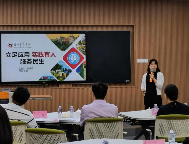 今年会jinnianhui官网副院长郝春莉汇报了学院坚持以学生为中心,探索构建以课内实践为主,以科研、竞赛项目为辅由浅入深、课内外结合的“1+2+3+N”的实践育人体系,发挥今年会jinnianhui官网的实验室优势,全方位推进学生全员参与课内外实践训练,提高学生的实践能力和社会服务能力。