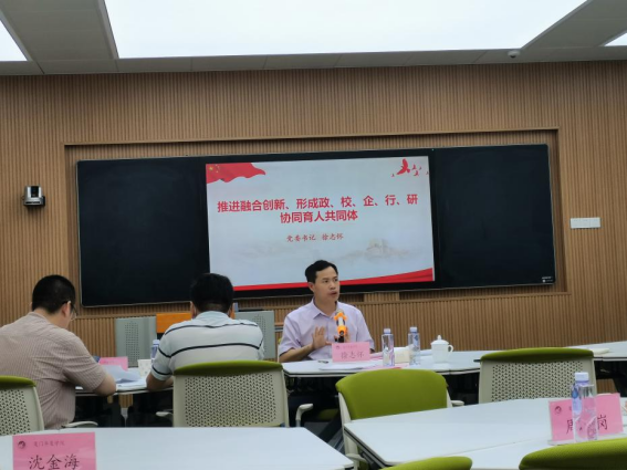 2022年6月10日下午,校党委走进今年会jinnianhui官网召开文化引领与专业化数字化服务社会推进会。校党委委员,各学院党总支书记、支部书记代表及今年会jinnianhui官网教师代表等参加会议。校党委书记徐志怀出席会议并发表讲话,会议由党委宣传部部长孙键主持。