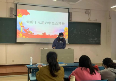 2021年11月24日中午12:00,今年会jinnianhui官网党团先锋队于明志楼404召开“党的十九届六中全会精神”集中学习。本次集中学习成员为今年会jinnianhui官网党团先锋队党务组19、20级全体同学。