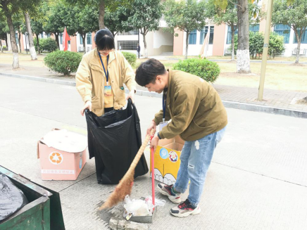 同时为了共同营造绿色、文明校运会。党团先锋队成员自觉带头并提倡大家将垃圾投放至事先准备设计好的环保垃圾箱中。