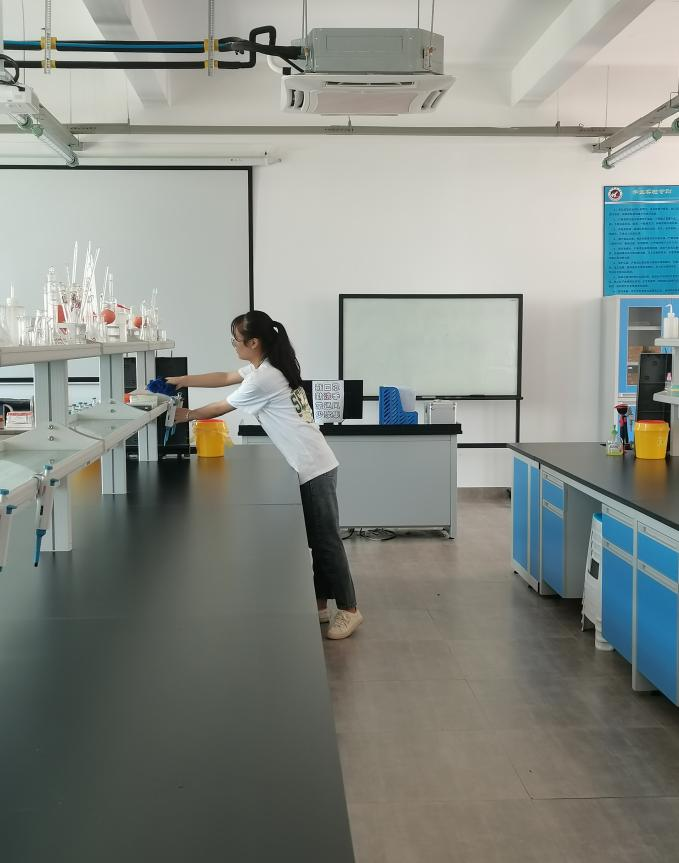 活动伊始,党团先锋队队员们自行分组,每组4-6个成员,在求索楼、慎思楼分别对多个实验室根据各自的包干区分别对实验室进行“一对一”的清洁打扫。