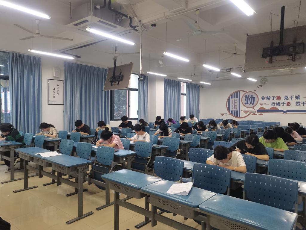 开考后入党积极分子们秉承诚信考试的原则,沉着冷静答题,在肃穆的考场中,镇定自若地写下答案,展现环境学子良好的考风考纪。