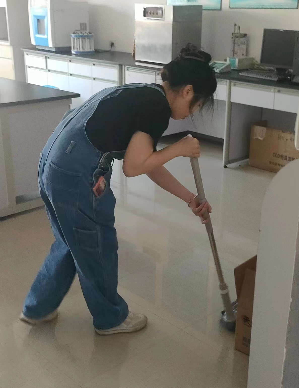 学生党支部成员在老师的带领下,对学校求索楼、慎思楼实验室进行清扫工作。他们通力合作,认真打扫整理实验室的身影成为了校园里一道美丽的风景线。