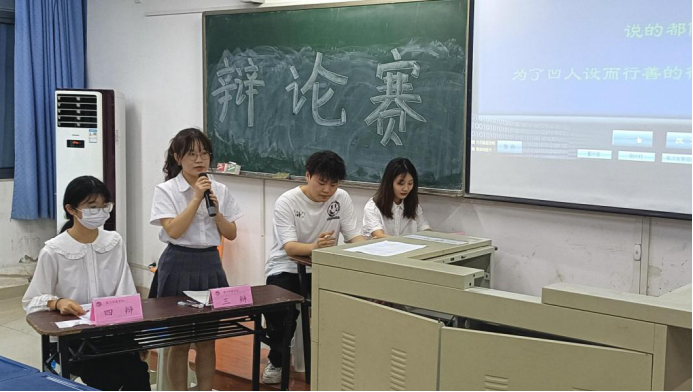 为了发掘辩论人才,培养现代学子创新和团队精神,提高现代学子的逻辑思考能力、辩论演讲能力、语言表达能力,增强团队协作意识,2022年5月11日18:30以“载知行万里,辩声满校园”为主题的辩论赛在闻道204顺利举行。