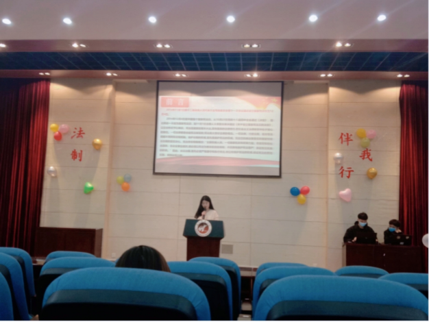 在音乐声中,参加活动的环境学院学生依次入座。首先由纪检部部长朱佳玲向大家宣讲国家宪法日以及中华人民共和国宪法的内容。这让大家认识到了国家宪法日的重要性,同时也更加了解了宪法的具体内容。