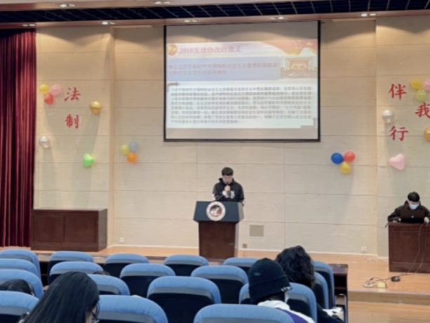 有趣的有奖问答结束后,由纪检部副部赵鸿胜向大家宣讲当代大学生如何维护自身权益与2018年宪法修改及意义的内容,让我们了解到法律知识在日常生活中的运用是很广泛和普遍的。