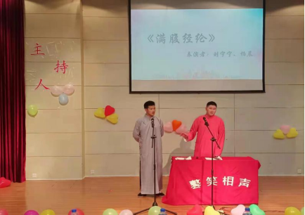 各参赛选手一一进行表演之后,迎来的紧张的打分与统分环节。在此时间内,曲艺协会为我们带来精彩的相声表演《满腹经纶》,伴随热烈的掌声和喝彩声,比赛结果也最终揭晓。
