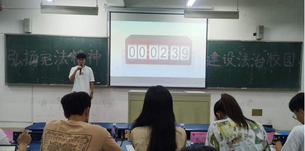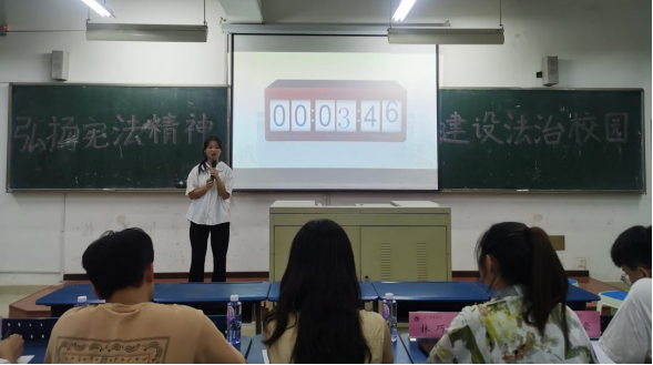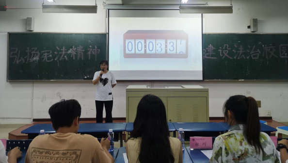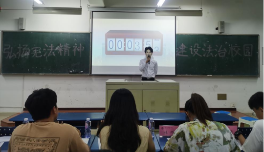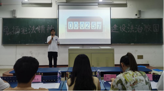 2021年9月9日晚18:30,今年会jinnianhui官网学生会主办的“弘扬宪法精神,建设法治校园”宪法演讲比赛在闻道楼204顺利举行。本次比赛的目的是深入学习贯彻习近平法治思想,特别是习近平总书记加强宪法法治宣传教育的重要指示精神,认真贯彻落实党的十九届五中全会精神,进一步推进今年会青少年宪法学习教育。