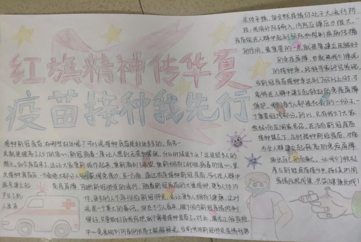 至此,“红旗精神传华厦 疫苗接种我先行”主题手抄报活动圆满结束。
