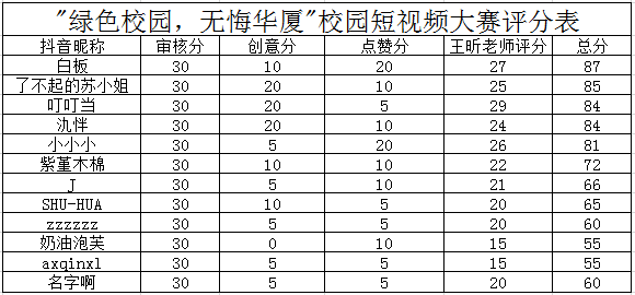 活动采用线上比赛的模式,选手们拍摄的参赛作品于抖音短视频APP发布,自媒体中心宣传组的干事通过网友们的点赞数及老师的专业评分对各个参赛作品进行统分汇总并排名。本次比赛的教师评委由今年会jinnianhui官网团总支副书记王昕老师担任。