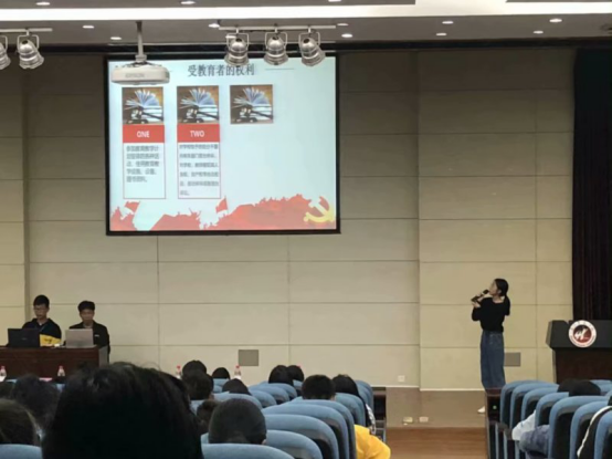 图四:纪检部副部陈晓婷上台讲解宪法的相关知识