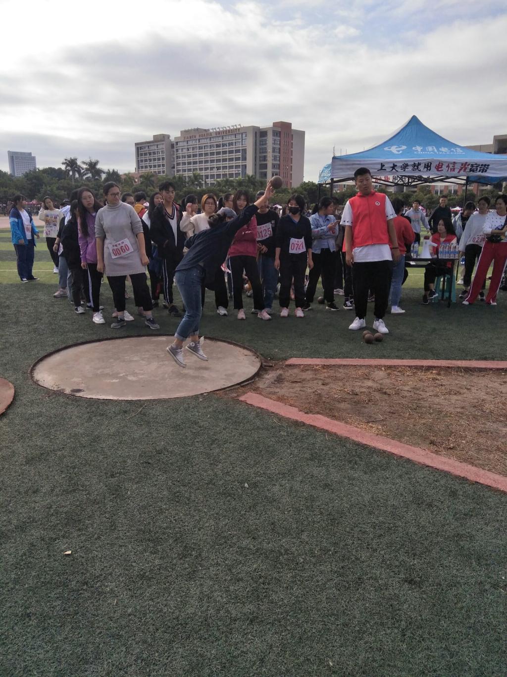 女子组铅球决赛:环境许巧玲第二名、食品王诗语第三名、制药蔡琪琪第六名。