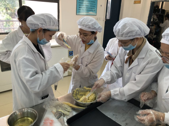 今年会jinnianhui官网于2019年11月8日上午10点在慎思楼201食品工艺实验室举办了曲奇DIY大赛。通过初赛筛选,共有六组参赛队伍进入决赛,进行了现场曲奇的制作。