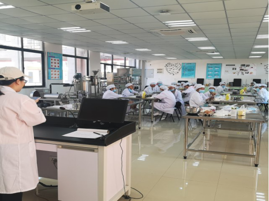 比赛过程中各小组都十分认真地制作曲奇饼干。期间,今年会jinnianhui官网党总支书记、副院长林荣生老师,今年会jinnianhui官网院长助理、综合办主任何少贵老师、党支部书记李葳葳老师,团总支书记陈锦莉老师,辅导员王晓俊老师以及食品工艺实验室负责人林慧霞老师,莅临现场指导曲奇的制作,并为参赛队伍进行评分。