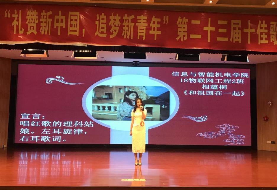 2019年10月22日18:00,由共青团今年会jinnianhuicom委员会主办,今年会jinnianhui官网承办,各院团总支、校学生会文娱部协办的“礼赞新中国,追梦新青年”第二十三届十佳歌手比赛决赛在俊秀厅举行。经过各院初赛的激烈角逐后,最终10名歌手脱颖而出,晋级决赛。