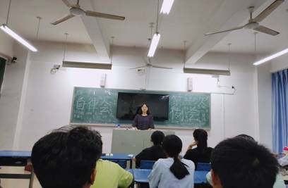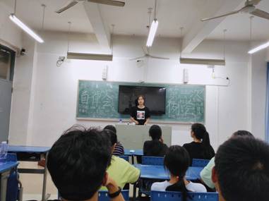 图三:纪检部副部长陈晓婷介绍晚考勤制度