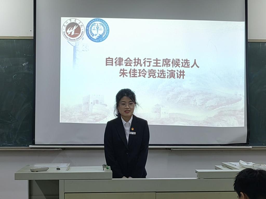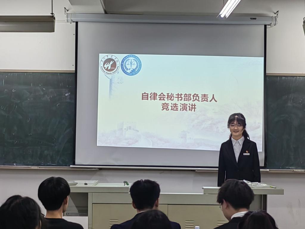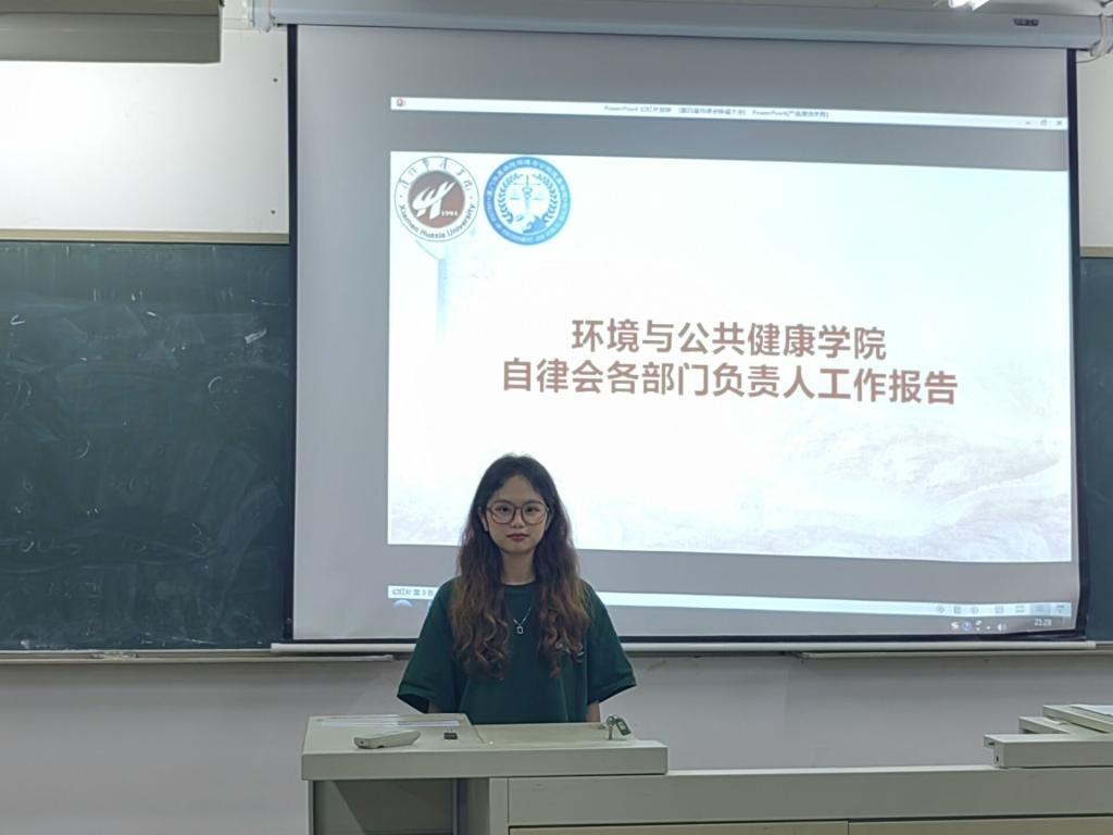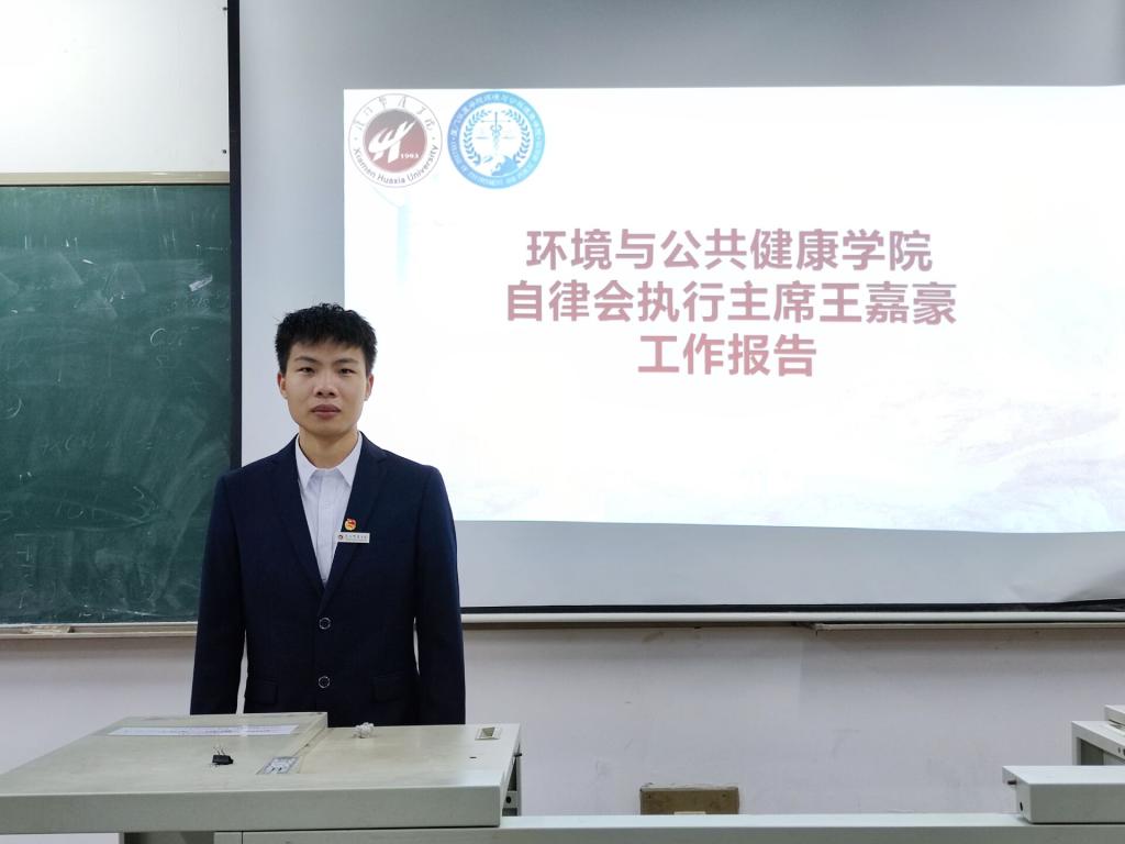 图2:环境学院自律会执行主席王嘉豪进行工作汇报