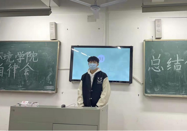 院自律会主席王嘉豪对这一学期的工作进行总结