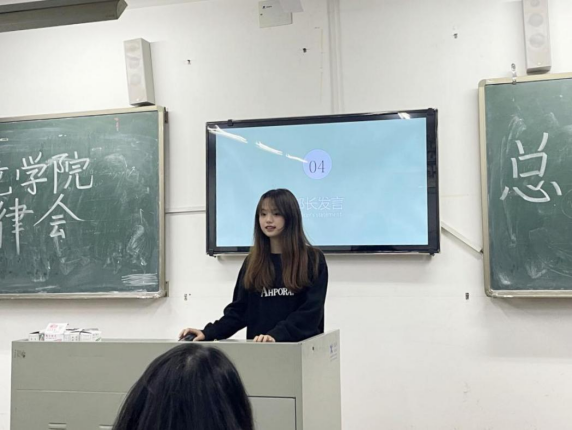 纪检部部长朱佳玲汇报了这一学期纪检部所做的工作和举办的活动以及其完成情况,她在相应的具体工作中指出了部分干事们存在的问题。