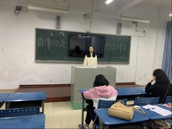 图五:自律分会主席苏雪琪进行工作总结