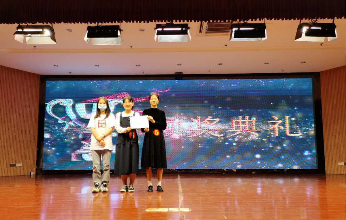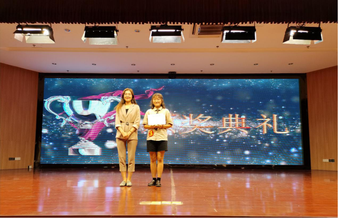 图八:王昕老师和丁黄滢为获得优秀奖的同学颁奖