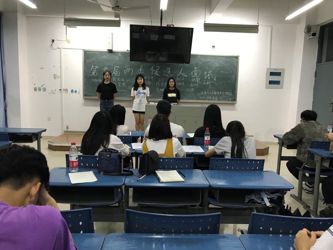 该面试总共分为主席团成员面试与部长面试两个部分,竞选主席团的干部们经历了一年的干事以及一年干部的工作,明显相对于干事们显得从容不迫些。干事们在外等候的就显得愈发的紧张了。在面试竞选主席团成员的干部们时,主要是考验他们的领导能力了。而在面试竞选干部的干事们时,明显是针对他们的工作能力以及对角色的转换的考察。总而言之,本次面试,大家的面试问题都是很有针对性的和侧重点的,重点关注工作效率及能力。