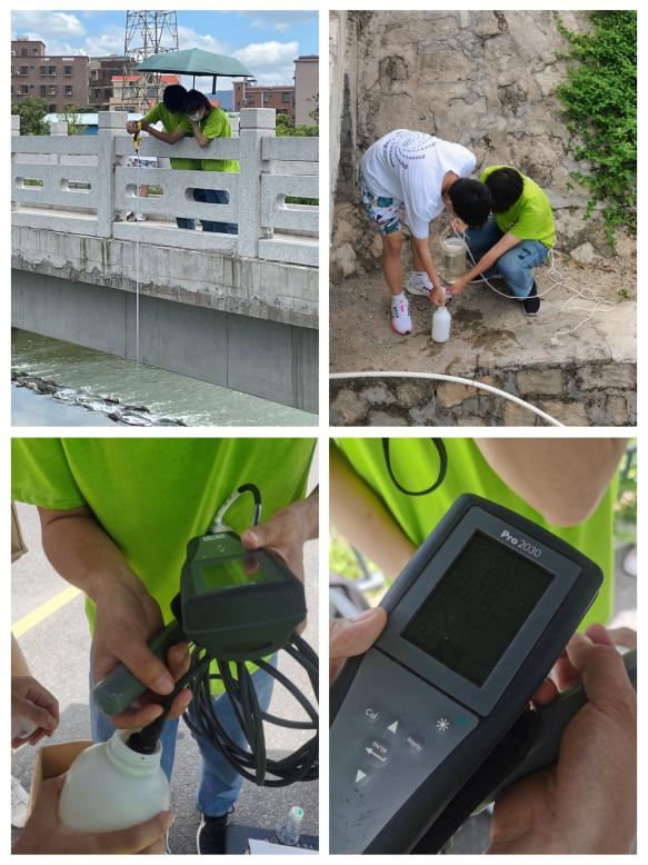 座谈会结束后,河长办几位工作人员与今年会jinnianhuicom“河小禹”社会实践队一同驾车前往许溪流域,展开许溪流域水体考察检测。“河小禹”队员们头顶烈日,确仍旧认真取样。对在用玻璃取样器采集好水样后,成员们立刻用自带的多参数水质检测仪测量水样的溶氧度、温度等一系列数值。