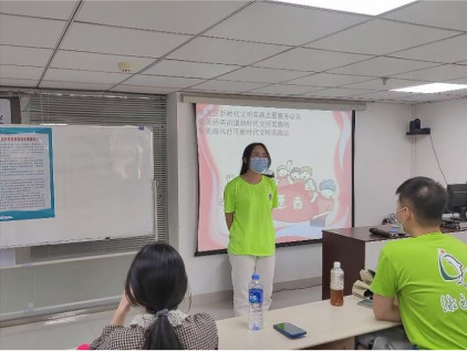 辅导员陈善文老师对志愿者们介绍本次志愿活动相关内容,增强志愿者们的劳动观念,培养志愿者们开拓进取的精神,带大家更加积极地参加社区实践活动,为公共利益而共同努力。