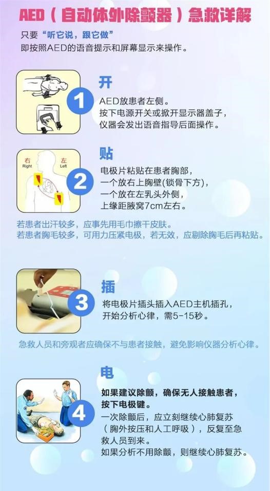 第二环节是讲述AED(自动体外除颤器)的操作方法,AED配合心肺复苏手术,可极大提高患者心源性猝死的拯救率。